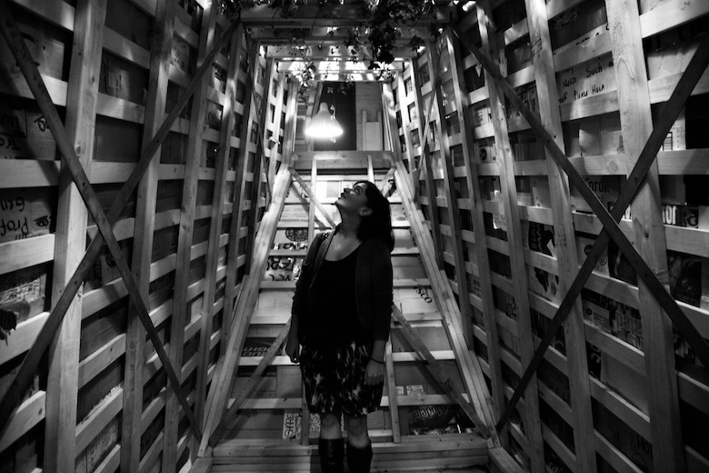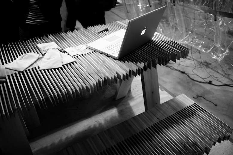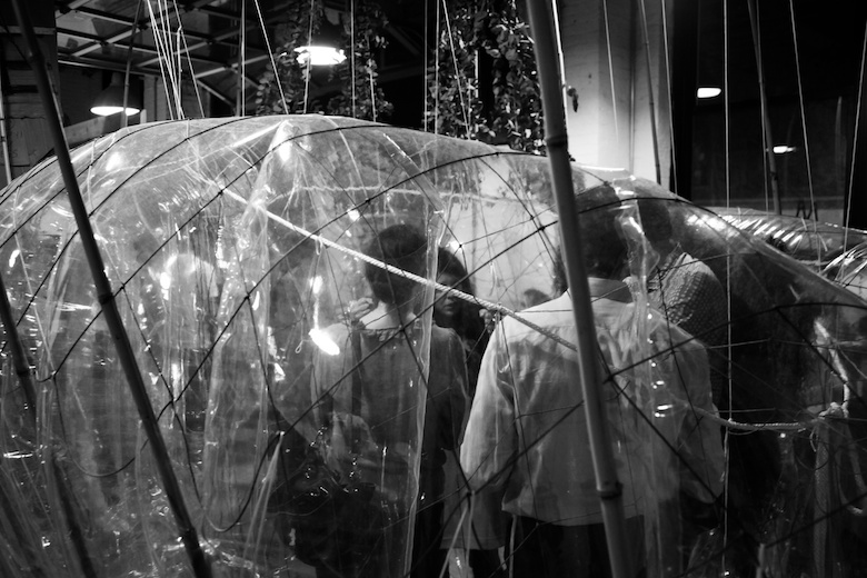 Been to Sukkah City NYC 2010 (pre) exhibition. I thought it’s already installed at Union Square, but it’s not. It’s kind of pre-contest. Some are built, some are yet. Online poll is going on at the New York magazine, and the chosen one will be erected at Union Square. (until Oct.2) If Nidhi wasn’t with me, I might go to Union Square instead of the Gowanus Studio Space.