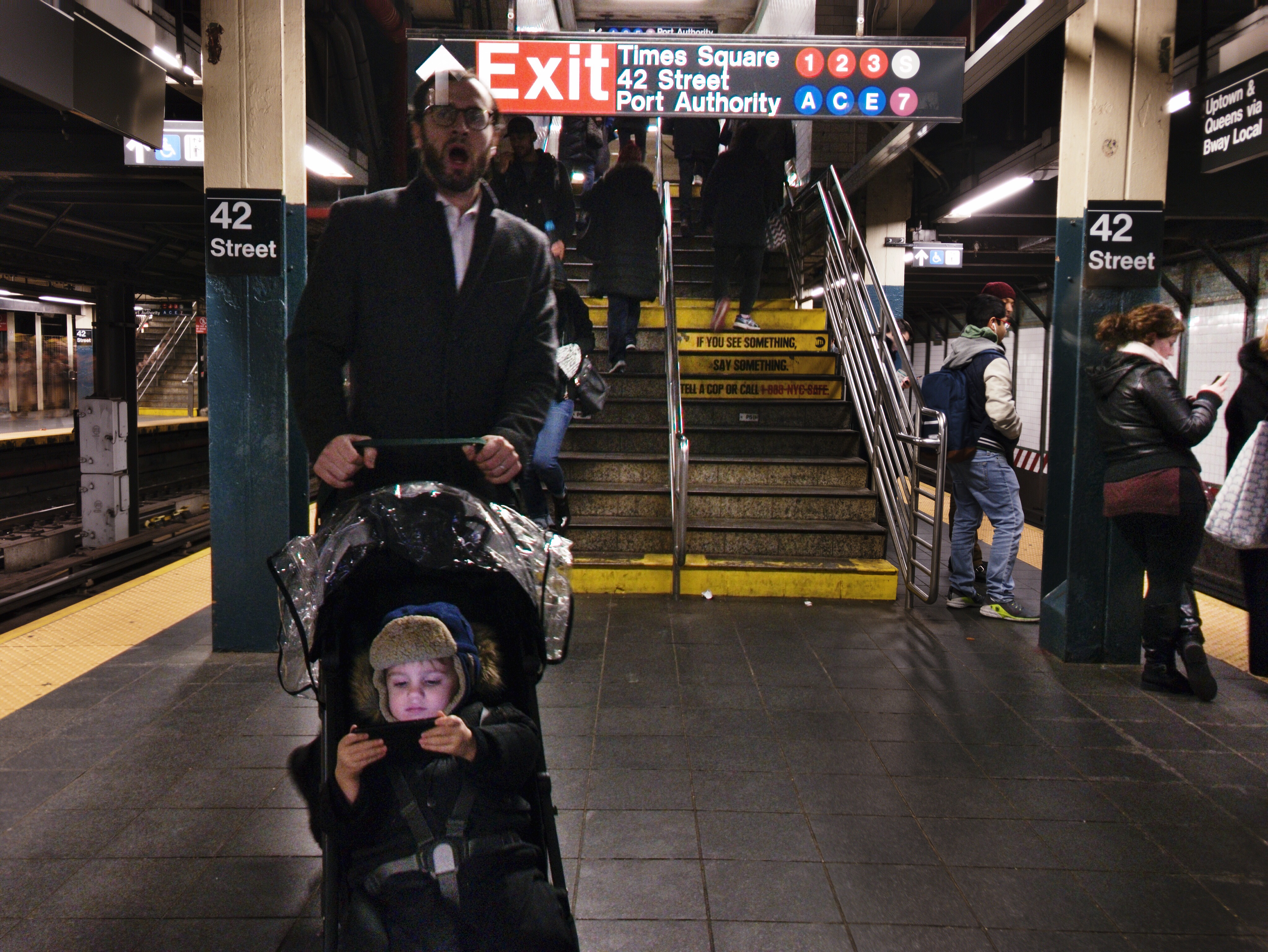 장시간 노출이라 그냥 들고 서 있는데 계단 올라가느라 다들 별로 신경 안쓰는 장소