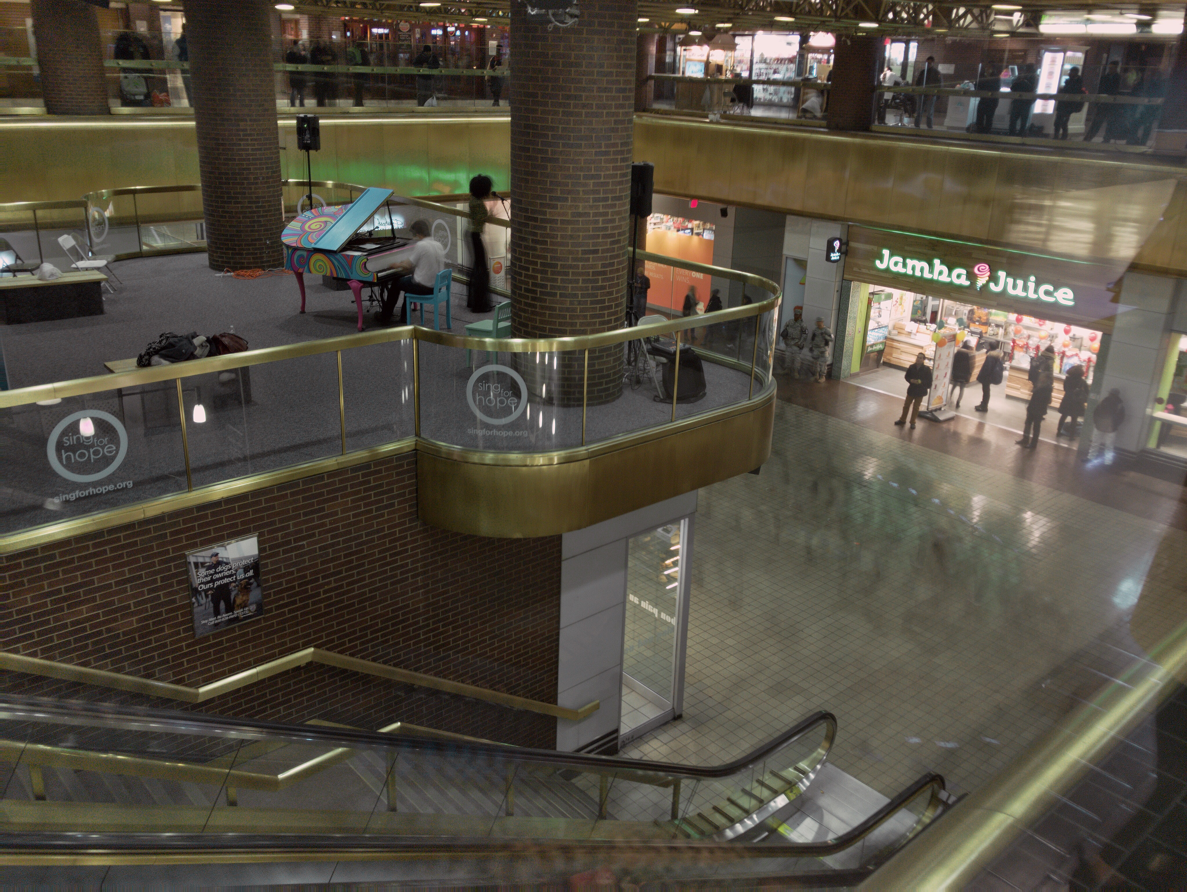 그런데 대략 작년 여름부터인가 피아노 한대가 보였고, 난데없는 연주가 터미널 전체에 울려퍼지기 시작했다. 보통 저런 큰 공간에 울려퍼지는 피아노라는 것이 연주가 좋고 나쁘고의 문제가 아니라 배경음악에서 벗어나지 못하는 경우가 대부분인데, 저번 주에는 꽤나 멋진 보컬의 연주가 있었다.