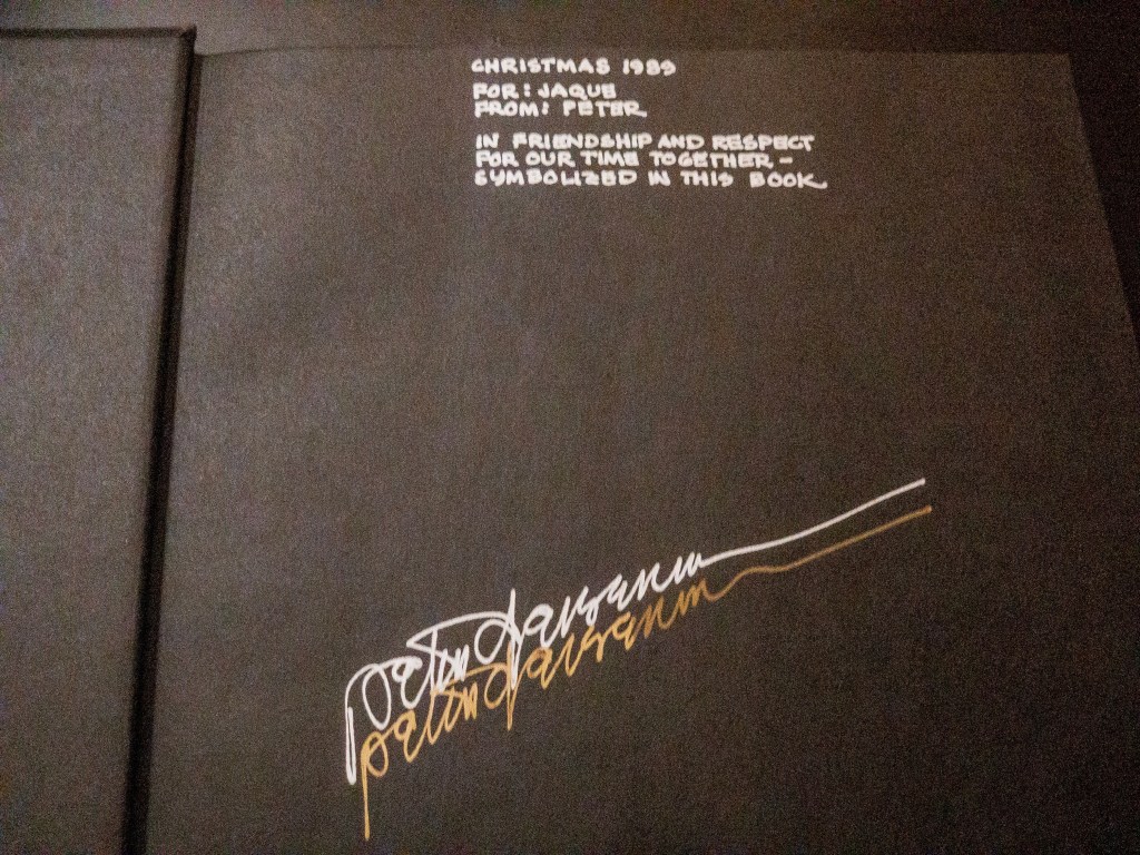 연도를 보니 쿠퍼로버트슨을 만들고 1년 뒤. 사진으로는 티가 잘 안나지만 은색 마카와 금색 마카로 정성스럽게 적었다. 잭 옹께 아이젠만 옹이 “우정과 존경을 담아, 우리가 함께 했던 시간이 이 책에 ‘심볼라이즈’ 되어있다.” 라고 한다. 안 그래도 심볼만 가득하다는 아이젠만 옹이 뭘 또 심어놨어 그래. 아마도 잭의 클래식한 오더들이 있겠지 싶다. 그걸 비틀고 더하고 빼고 하는 게 아이젠만옹이시니까. 그리고 이 둘의 대화는 티비 프로그램에 대담을 통해 이렇게 남아있다.