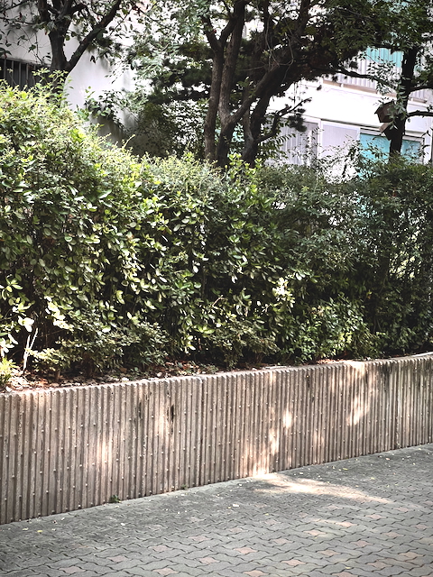 아무래도 프라이버시를 침해받을 가능성이 높은 저층부는 보행자쪽으로 화단이 구성되어있습니다. ‘나름’ 백야드 역할을 하는데, 이 화단을 만들기 위한 벽은 콘크리트로 만들어졌습니다. 아마도 동일한 거푸집으로 표준화 시켰던 모양인데, 간단하지만 꽤나 디테일하고 질리지 않는 디자인입니다.